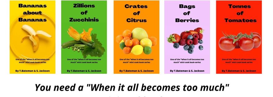 "Bags of Berries", "Crates of Citrus, "Tonnes of Tomatoes", "When it all becomes too much", "Zillions fo Zucchinis", 99 cents, Cook Books, Terri Bateman & Sarah Jackson, Writers Journey99 cent cook books available for download November 27, 2020November 2, 2020 sarahjwrites You can get your copies of these and other mini cookbooks through Amazon for $AU0.99 each: “When it all becomes too much” Share this: Print (Opens in new window) Print Share on Facebook (Opens in new window) Facebook Share on Tumblr (Opens in new window) Tumblr Share on WhatsApp (Opens in new window) WhatsApp Share on Pinterest (Opens in new window) Pinterest Share on Bluesky (Opens in new window) Bluesky Email a link to a friend (Opens in new window) Email Like Loading... Related