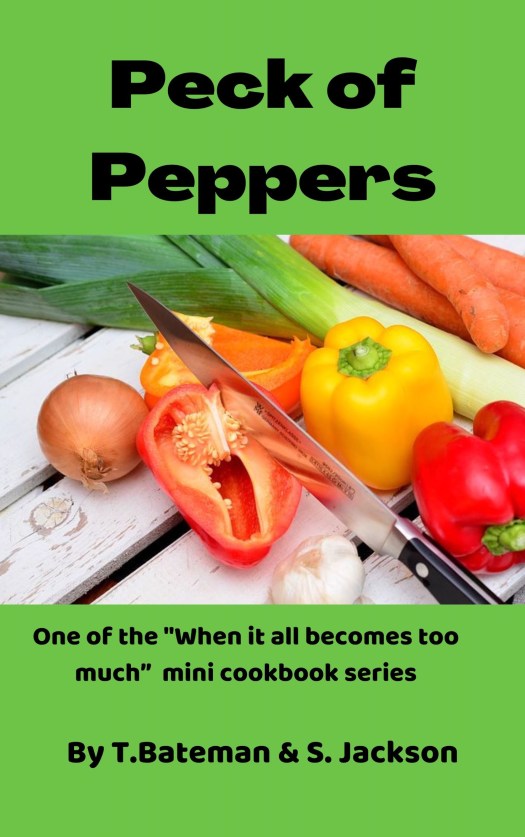 “Peck of Peppers” is the latest instalment in the “When it all becomes too much” produce mini cook book series by Terri Bateman & Sarah Jackson. This easy to use e-book contains some useful peppers facts and 20 easy to make recipes to help you manage your glut of that hot stuff.